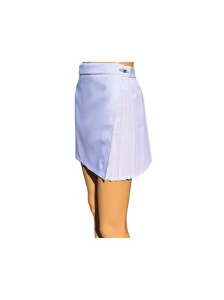 Falda deportiva blanca con un diseño moderno y detalles de rayas. - Diseño con tres rayas verticales: una azul marino, una azul turquesa y otra azul marino. - Paneles laterales con pliegues y detalles de rayas en azul marino. - Cintura elástica para mayor comodidad.