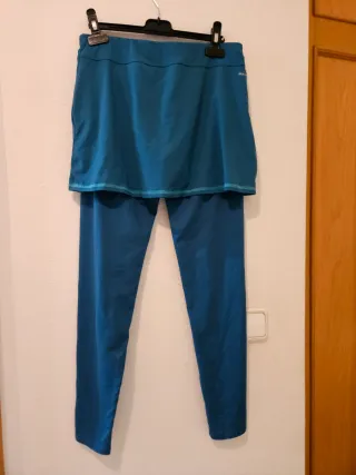 Mallas deportivas con falda integrada, ideales para actividades como el tenis o pádel. - Color azul. - Diseño tipo falda-pantalón.