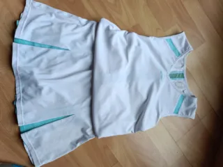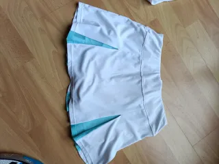 Camiseta de estilo polo para mujer, ideal para actividades deportivas como el pádel o tenis. Falda pantalón blanco con bolsillo para la pelota. Transpirable y de secado rápido. 15€ el conjunto, no se venden por separado. Precio no negociable.