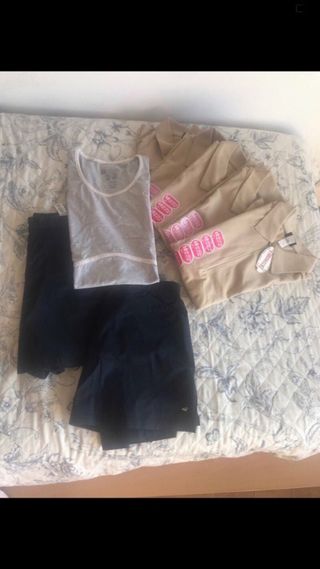 Camiseta boomerang T36,fucsia/ pantalón tenis Cnesis Talla S , pantalón boomerang T 38 , pantalón Nike Talla S, falda Cnesis tenis Talla S, color marino. REGALO 3 camisetas básicas tenis y un polo de tenis .