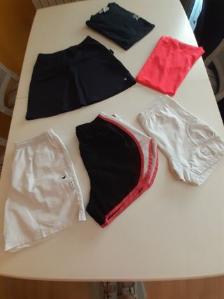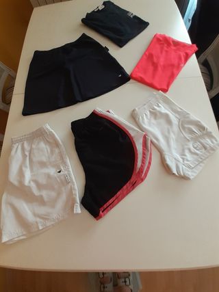 Faldas y camisetas de tenis Inesis y Domyos de Decathlon. Todo por estrenar menos la camiseta gris que está llevada en un par de ocasiones. Una falda es talla 36 y la otra 14 años. La camiseta gris es talla 42 y las otras son talla 42 y 44. Vendo cada pieza a 3€.