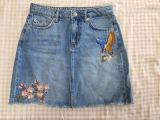 Minifalda vaquera bordada Fórmula Joven. Talla 36
