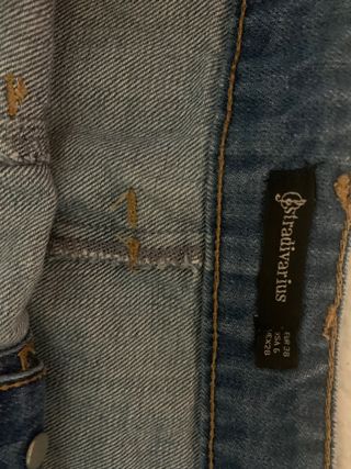 Minifalda estilo vaquero de Stradivarius, tejido poliamida y elastano,muy cómoda. Fotos con medidas - Diseño de 4 bolsillos. - Cierre de cremallera y botón. - Costuras a tono.