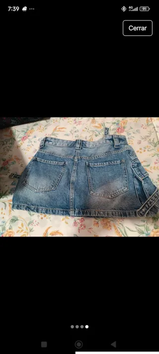 Falda vaquera corta de estilo moderno. - Diseño con cremalleras decorativas. - Cintura con trabillas y cierre de botón. - Tejido vaquero resistente. Pone L pero es una S Eligiendo 4 prendas de mi perfil, una de regalo, la de menos valor. Total pagas 3 te llevas 4 prendas