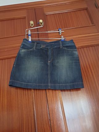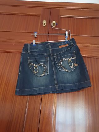 Falda vaquera corta elástica talla S/M mide de cintura 38 largo 34