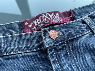 Falda vaquera midi. 2 bolsillos delanteros amplios. 2 bolsillos traseros. Talla 4. (Cadera 40-42 cm). Marca: Roxy. Color: azul con efecto envejecido. Material: 100% algodón.