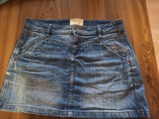 Falda vaquera. Aunque pone talla 42, es más pequeña...(la he utilizado yo que suelo llevar la 36 en vaqueros)
