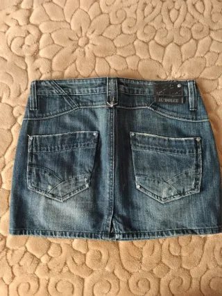 Falda vaquera de la marca IL' DOLCE. Es una talla 38 pero talla un poco más grande. - Diseño clásico de cinco bolsillos. - Tono azul desgastado. - Cierre de botón y cremallera. Cualquier duda preguntar. Envío como más convenga al comprador.