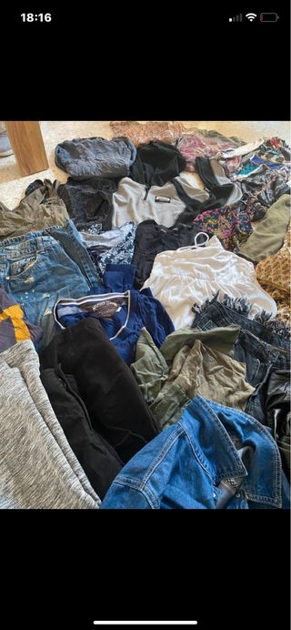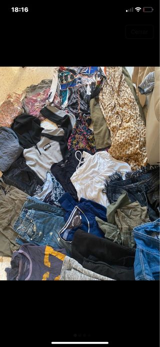 Lote de más de 20 prendas de mujer y algunas unisex con algunos artículos de marca como tommy hilfiger o ralph lauren. Incluye vestidos, una falda, una chaqueta, camisetas, vaqueros etc… tallas S/M y alguna L
