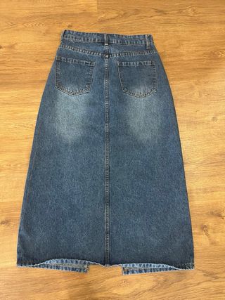 Falda larga vaquera con apertura delantera en color azul. Es una prenda bonita y cómoda, perfecta para cualquier ocasión. - Diseño clásico con abertura central. - Tiene bolsillos funcionales en la parte trasera. - Corte recto y largo. - Talla S. - SHEIN. - SE ENVIA CON PEDIDO MINIMO DE 10€.
