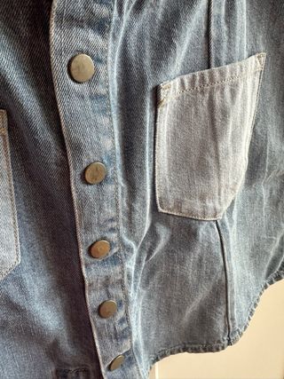 Falda vaquera de corte midi, con un diseño clásico y detalles modernos. - Tejido vaquero resistente. - Cierre con botones dorados decorativos en la parte delantera. - Abertura frontal para mayor comodidad.