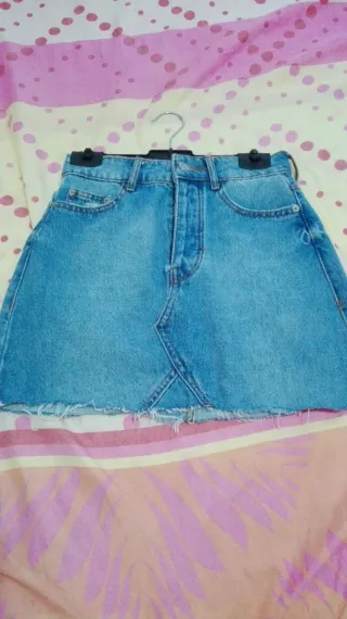 Preciosa minifalda vaquera de Bershka. Es una prenda ideal para cualquier ocasión. - Talla xxs - Corte clásico. - Bajo deshilachado. REBAJADA