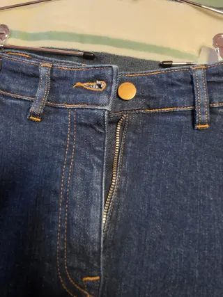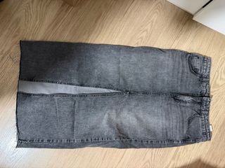Falda vaquera de corte midi. - Diseño con abertura frontal. - Tela elástica - Tiene una pequeña mancha detrás
