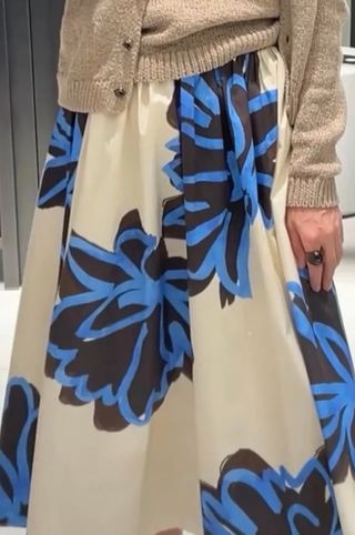 Falda de Zara con un diseño elegante y llamativo. - Tejido con estampado floral con textura - Cintura elástica fruncida.