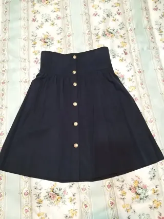 Falda de color azul marino de tela de paño. Tiene forro y cremallera por la parte delantera para poder ponerla.
