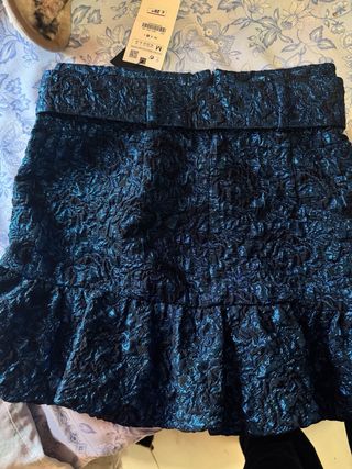 Falda Zara Azul y Negra Texturizada