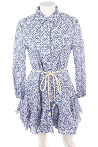 Vestido Zara Estampado Azul y Blanco