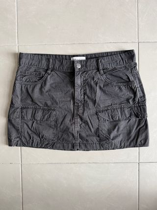 Falda corta de estilo cargo en color gris. Es una prenda versátil y cómoda. Cierre de botón y cremallera, dos bolsillos laterales con solapa, dos bolsillos frontales y costuras visibles. Nunca usada, esta nueva. Estilo casual moderno. Ideal para primavera/verano. Mas fotos o medidas por privado ☺️ Precio algo negociable.