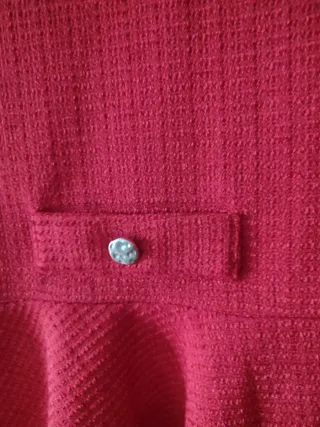 Conjunto de dos piezas de Zara, compuesto por chaqueta y falda. TALLAJE PEQUEÑO, equivale a una talla M . - Chaqueta corta con cuello redondo y manga 3/4. - Cierre de botones dorados. - Dos bolsillos delanteros con solapa y botón. - Falda recta de largo mini.