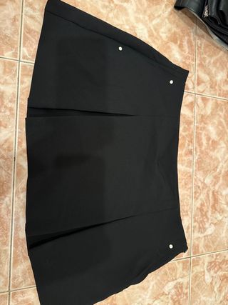 Falda de paño de la marca Zara. Diseño de corte recto. Cierre de cremallera y detalle de dos botones en la cintura. Tiene forro interior por lo que no transparenta nada.