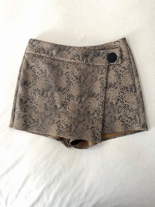 Falda pantalón de Zara con un llamativo estampado de serpiente. - Diseño cruzado. - Detalle de botón en la cintura. - Forro interior.
