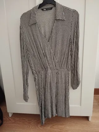 Elegante vestido estilo gabardina de Zara. Su diseño largo y de manga larga lo hace perfecto para diversas ocasiones. Talla S. Nuevo con etiqueta. Precio no negociable. Hago envíos - Cierre cruzado con botones. - Cinturón a juego para ajustar la cintura. - Bolsillos laterales. - Corte evasé en la falda.