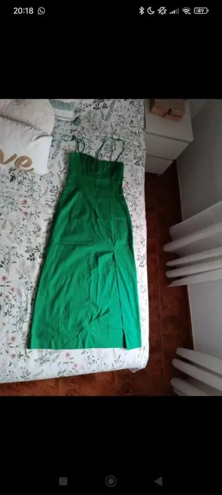 Vestido verde largo con abertura Zara