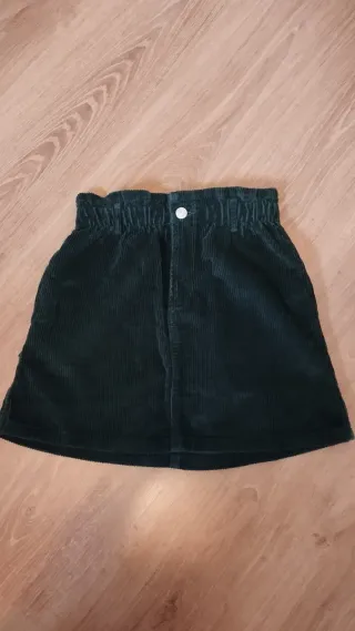 Falda de pana con cintura elástica. Talla 13-14 - Material: Pana - Color: Verde - Cierre de botón y cremallera