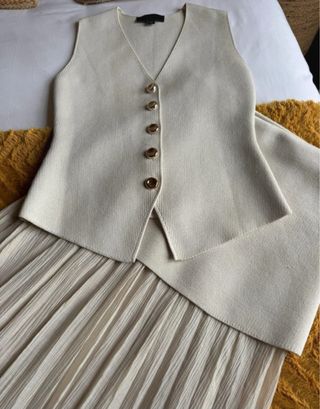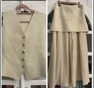 Conjunto Chaleco y Falda Zara Beige