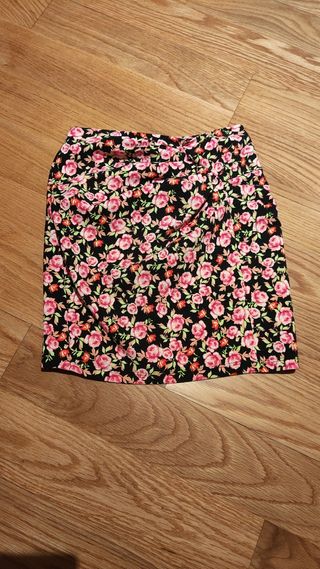 Preciosa falda corta con estampado floral. Ideal para primavera/verano. - Diseño alegre y colorido. - Tela suave y ligera. - Perfecta para cualquier ocasión.