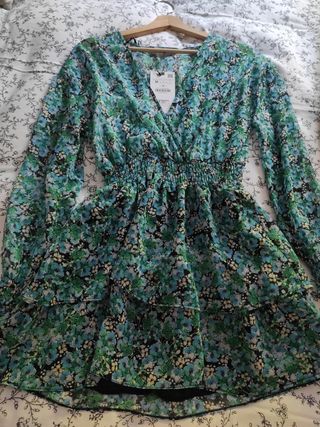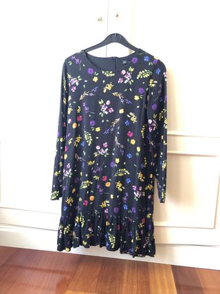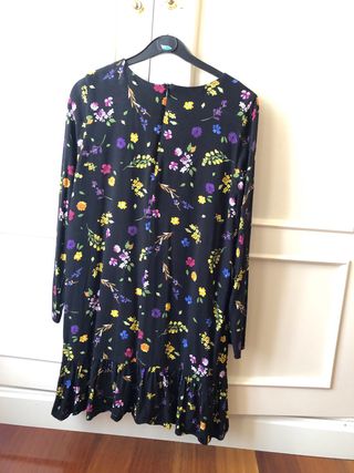 Vestido de Zara con estampado floral. Está nuevo, con etiqueta. - Diseño con volantes en la falda. - Manga larga. - Cuello con detalle fruncido.