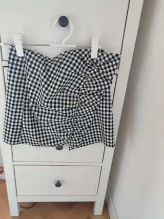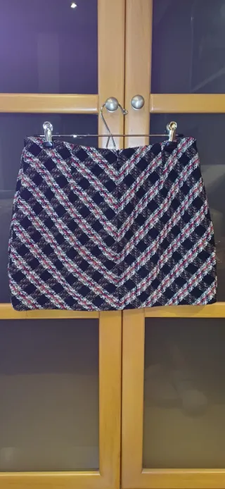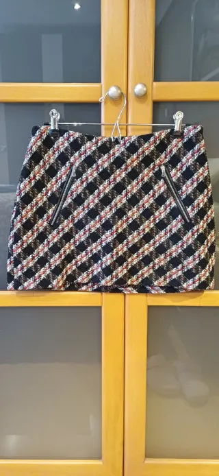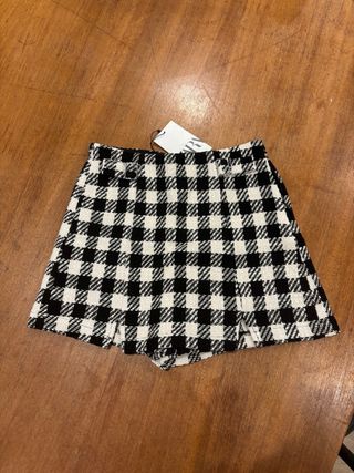 Falda corta de Zara con estampado de cuadros. - Diseño entallado. - Bolsillos estéticos frontales, no practicables. - cremallera invisible lateral sin etiqueta y sin usar, solo lavado