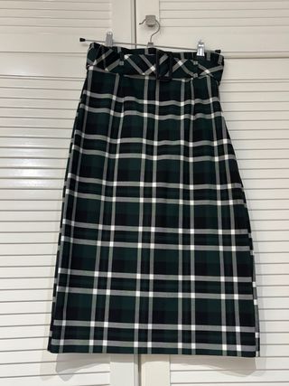 Falda de Zara con estampado de cuadros. - Diseño de cuadros verdes, blancos y negros. - Cintura con cinturón a juego. - Abertura trasera
