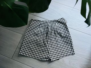 Shorts de Zara con un diseño que imita una falda, en un tejido con estampado de cuadros. - Estampado de cuadros - Cierre de botones - Tejido texturizado
