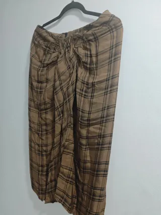 Falda pantalón midi de Zara con estampado de cuadros. - Diseño con botones delanteros. - Largo midi.
