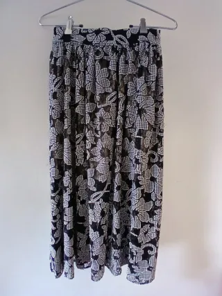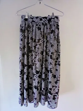 Elegante falda larga de Zara con un bonito estampado floral. - Diseño con cintura elástica. - Tejido ligero y fluido. - Estampado combinado de cuadros y flores.