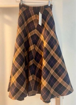 Falda midi con estampado de cuadros en tonos beige y marron, utilizada en muy pocas ocasiones. Talla L