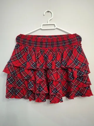 Falda corta con un diseño de volantes en cascada y estampado a cuadros. - Cintura elástica. - Varios volantes. - Estampado a cuadros. Talla 13/14 años, como una S