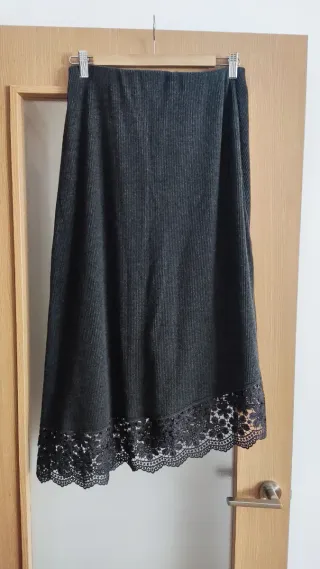 Falda paño gris con encaje negro