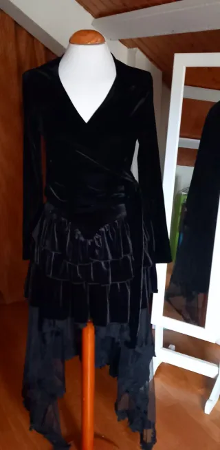 Precioso conjunto de fiesta con detalles de volantes y encaje. -Top de terciopelo cruzado en la cintura. - Falda de terciopelo con volantes - Bajo Falda de encaje de forma desigual. - Bajo de encaje. - Ideal para celebraciones.