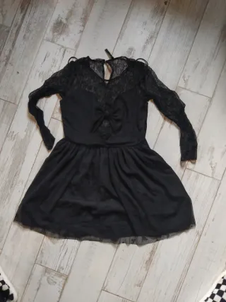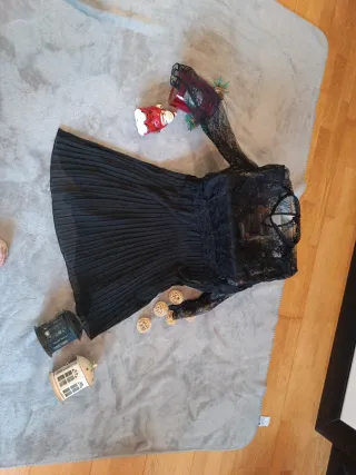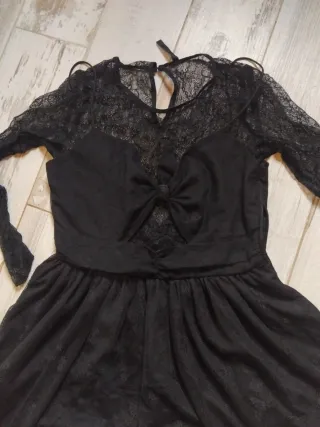 ✨ Vestido Zara negro de encaje – Talla S ✨ Vestido corto de Zara, talla S, en color negro con delicado encaje floral. Tiene manga larga semitransparente, cuerpo forrado y falda con caída ligera que estiliza mucho la figura. Corte en la cintura y cierre con cremallera trasera. 🖤 Elegante y versátil: ideal para eventos, cenas, fiestas o salir de noche. 🆕 Nuevo, sin etiqueta, en perfecto estado.