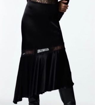 Falda midi satinada Zara encaje negro