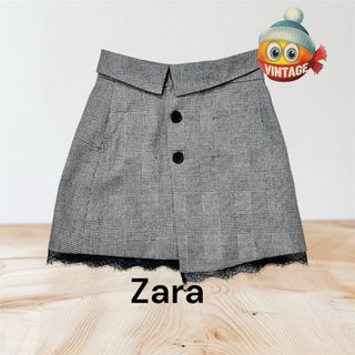 Falda corta de Zara en color gris con detalle de encaje negro en el bajo. - Tejido principal: lana. - Detalle: puntilla de encaje. - Diseño: recto.