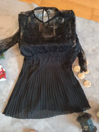 Vestido negro encaje y plisado
