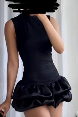 Vestido corto con un diseño elegante y moderno. - Tejido de encaje en la parte superior. - Falda efecto abullonado combinado en tejido satinado con volantes. - Cuello alto sin mangas. Cuello subido y manga sisa. Corto confeccionado en tejido de encaje suave. Forro interior a tono. Short pantalón corto unido Cierre en espalda con cremallera oculta. Precio original: 49,95€ Agotado en todas partes partes #viraldress #viraldresszara #blackdress #viral