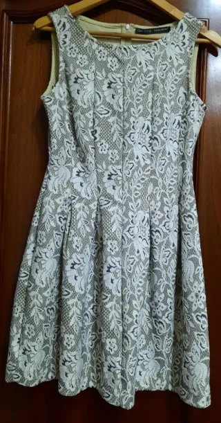 Vestido de Zara con un bonito estampado de encaje. - Diseño sin mangas. - Escote redondo. - Cintura marcada y falda con vuelo.