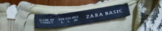 Falda de Zara con un diseño delicado y femenino. Perfecta para añadir un toque especial a tu armario. - Tejido ligero con estampado de topos. - Detalle de volantes y encaje en capas. - Color beige y blanco.