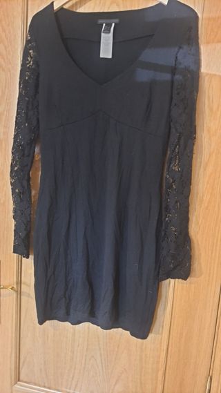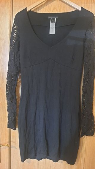 ✨ Vestido Zara negro de encaje – Talla S ✨ Vestido corto de Zara, talla S, en color negro con delicado encaje floral. Tiene manga larga semitransparente, cuerpo forrado y falda con caída ligera que estiliza mucho la figura. Corte en la cintura y cierre con cremallera trasera. 🖤 Elegante y versátil: ideal para eventos, cenas, fiestas o salir de noche. 🆕 Nuevo, sin etiqueta, en perfecto estado.