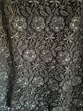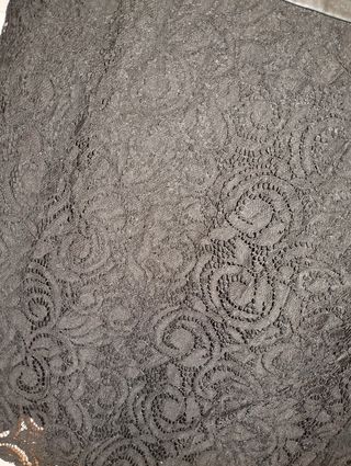 Falda ideal celebración de tela tipo encaje con forro por debajo y cinturilla de terciopelo en negro. Pone talla L pero sería más M no da mucha talla Yo lo usé en una comunión es muy elegante