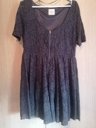 Precioso vestido de encaje negro, con bonito escote. Forrado entero. Cuerpo ajustado y falda de vuelo. Marca: Zara Talla: L Precio: 3 €